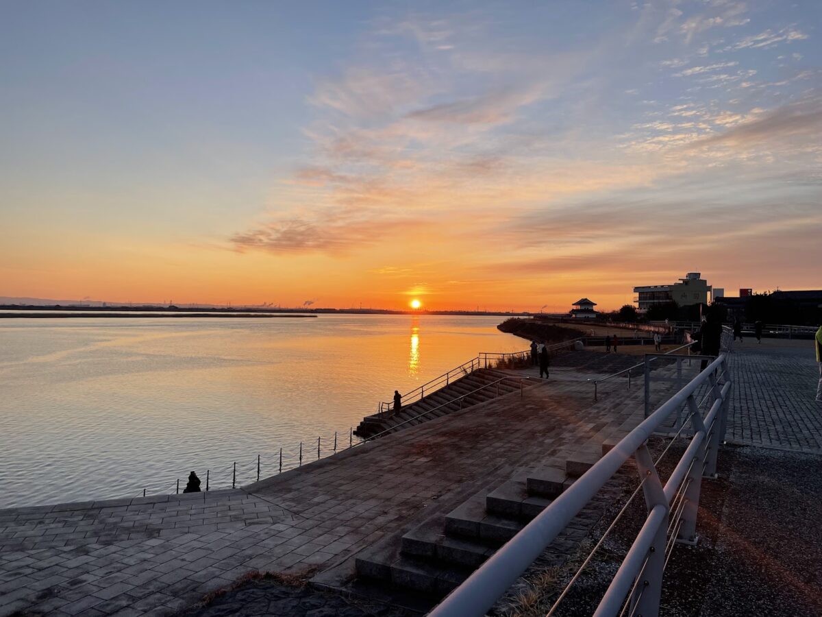 昨日の2022年元旦は雪が降っていて、初日の出を拝めなかったという事で、今日は朝より桑名市屈指の日の出スポットと呼ばれる住吉神社まで走って、日の出を拝みに行きました。