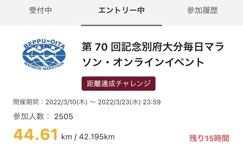 その後自宅まで約2㎞を走って、別府大分マラソンのオンラインイベントはトータル44.61kmにてフィニッシュしました。