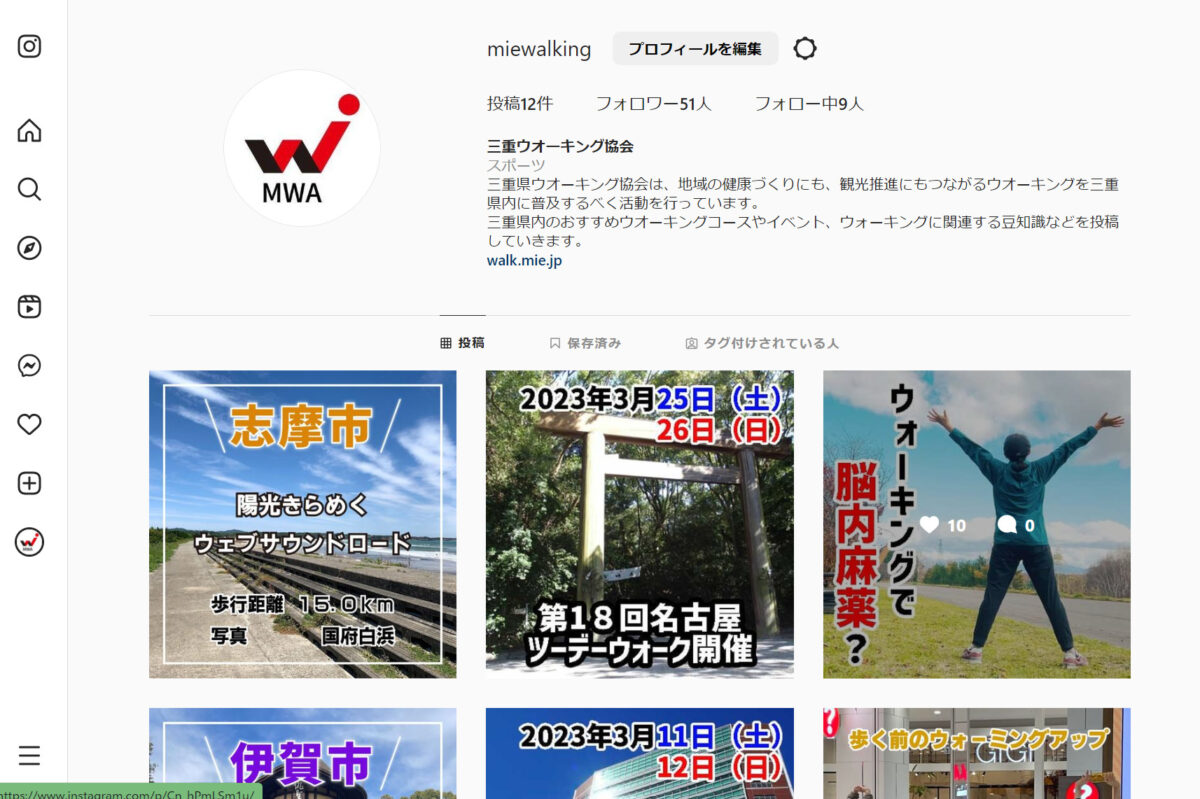 ただここ最近のインスタグラムのもたらす影響力の大きさは、かなりのところまで来ている気がしているという事で、まずは三重県ウオーキング協会のアカウントを作って、運営を始めることにしてみました。
