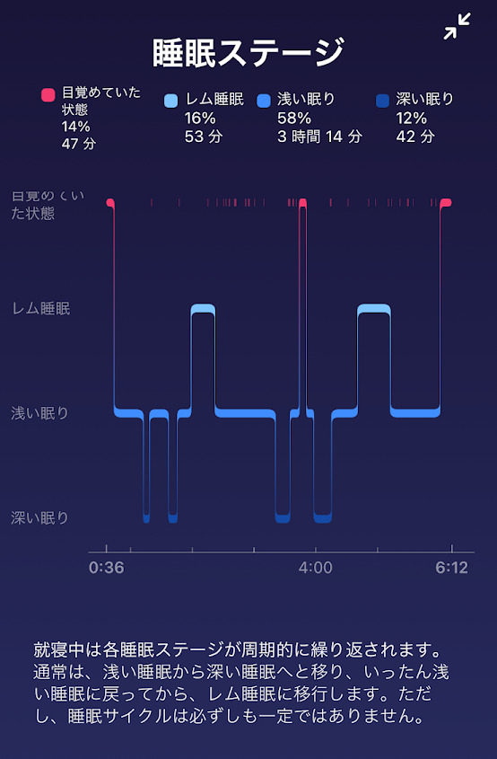 そんな中、唯一早速活用させていただいているのが、睡眠の測定機能。