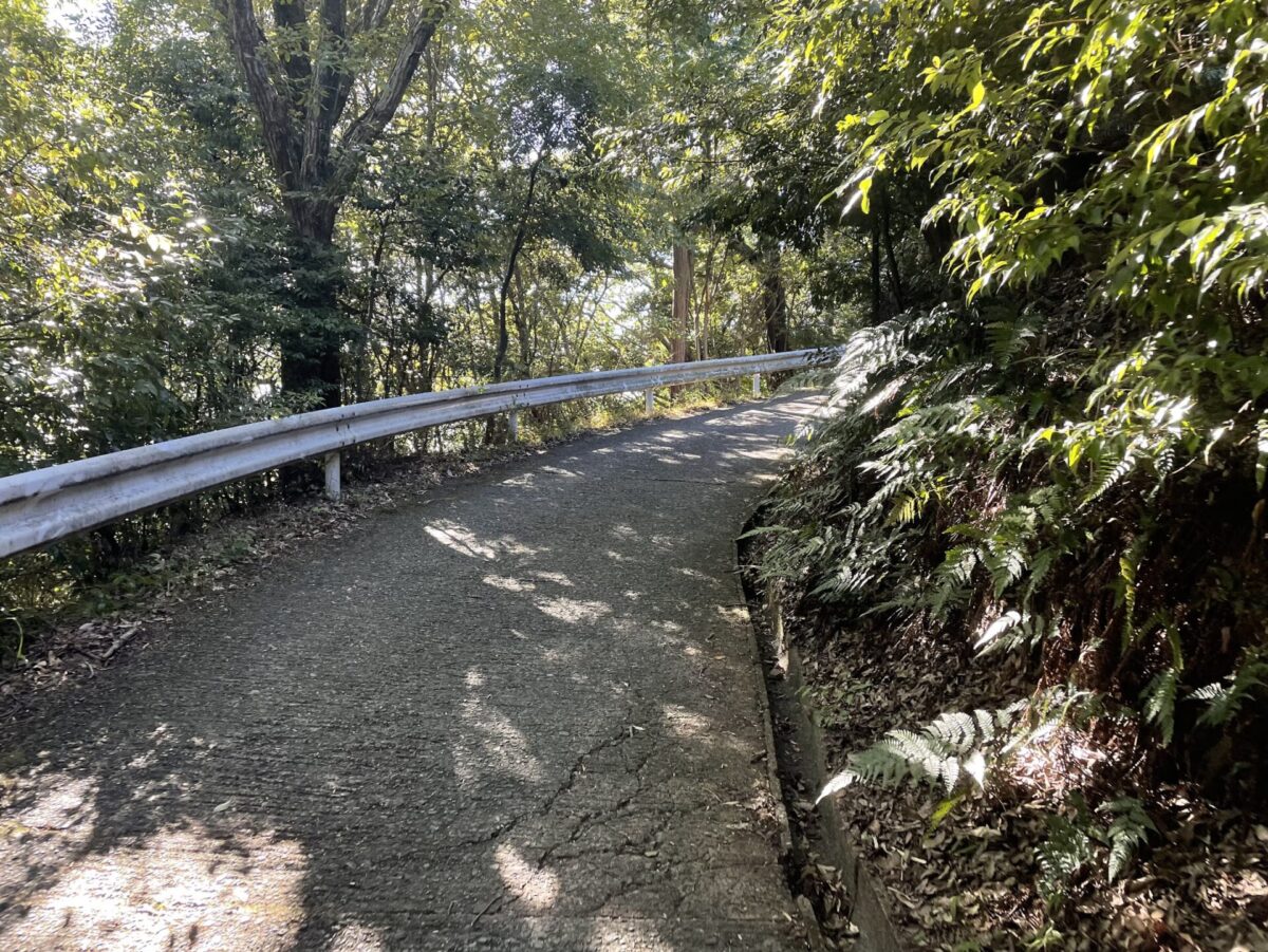 上りがきつければきついほど、下りもきつくなるのは当たり前という事で、多度山ではかなり傾斜のきつい下り坂を走り進めていく事となります。