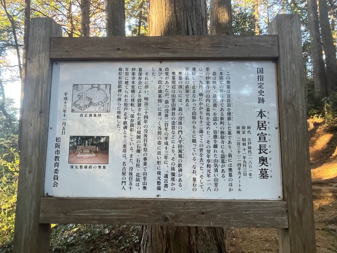 本居宣長は生前この奥墓がある山室山をかなり気に入っていたらしく、遺言でこの地に奥墓を造るようにしたためていたとの事。
