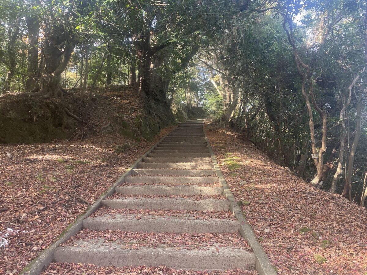そして入り口を抜けて、案内看板に従って、日和山の展望台を目指していくと、途中にはかなり長く続く石段が・・・