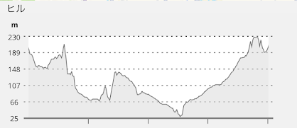 コースの途中には鈴鹿市と菰野町をまがつかなりきつい上り坂、そして下り坂があり、キロ6分ほどのゆっくりペースでもかなりの負荷を感じながらのランとなりました。