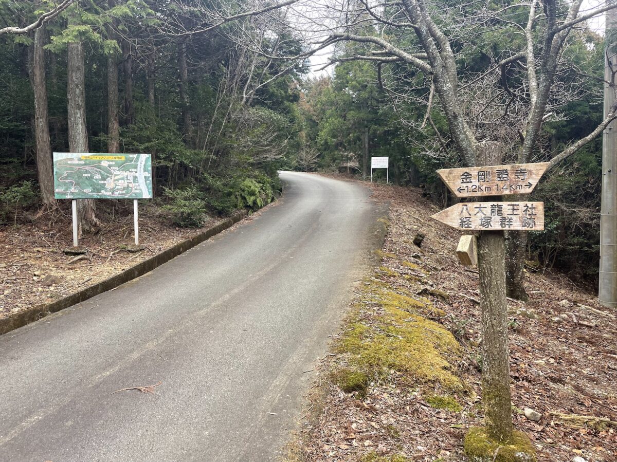 そしてようやく22町の目印を越えたところで登山道は終わったのですが、少し進んでいった先には目的地の金剛證寺まであと1.2kmの距離表示が。