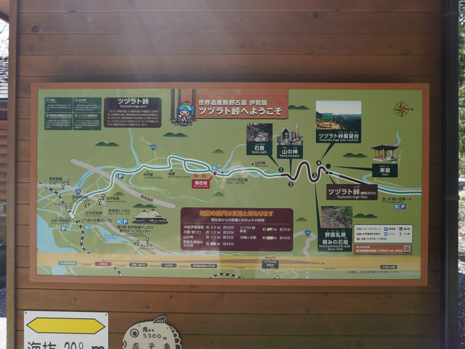 ちなみに三重県内にある歩きたくなる1000の道をエリア別にみていくと、北勢エリアが7コース、中南勢エリアが10コース、伊賀エリアが1コース、伊勢志摩エリアが7コース、東紀州エリアが5コース、そして今回歩いたツヅラト峠は伊勢志摩エリアに分類されることが多い大紀町と、東紀州エリアの紀北町をまたぐコースとなります。
