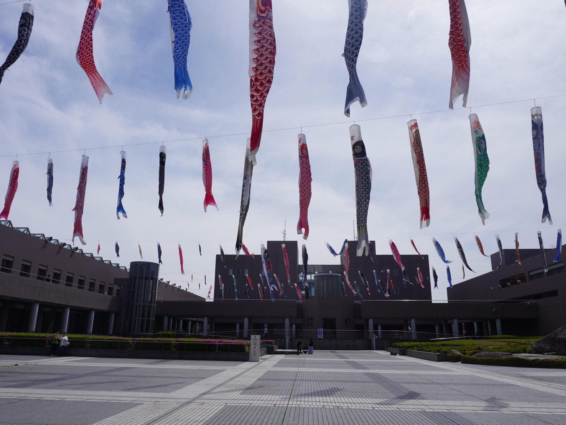 そしてそのあとは三重県総合文化センター内にある、三重県立図書館にて調べ物をした後、センターの広場とメインエントランスの空を泳ぐこいのぼり鑑賞を満喫させていただきました。