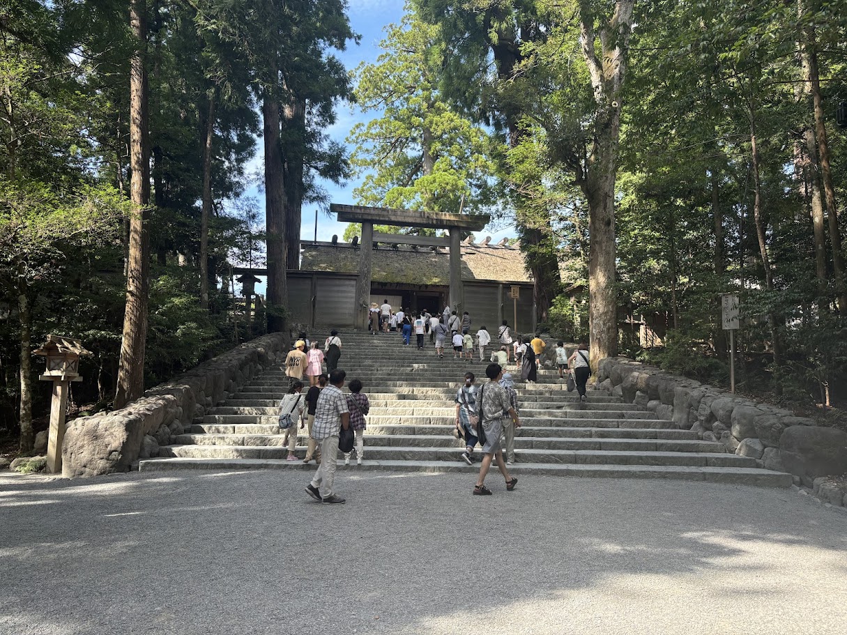 もうお盆も過ぎたはずですが、相変わらずのとんでもない蒸し暑さ、しかも15㎞近くも歩いてと明らかに脚もヘタっている状況にあっても、伊勢に来たならどうあってもやっておきたいのがお伊勢参り。
