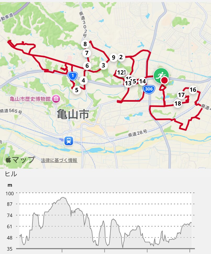 あとでGPS時計のラン履歴を見てみると、結構なアップダウンのある道を走っていたようでしたが、立ち寄るスポットで休んだり歩いたりしながら走っていたのもあって、最後の最後まで本当に楽しく走れていました。