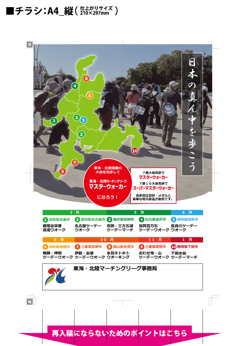 三重県では10月に開催される伊勢志摩ツーデーウォークと、11月に開催されるおわせ海山ツーデーウォークの2大会が認定されている東海北陸マーチングリーグですが、三重県外の6県についても魅力ある大会がそろっています。