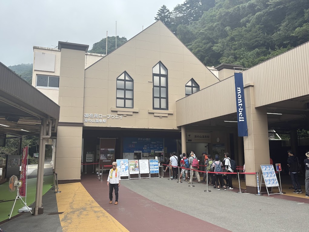 そして今回の峠走の目的地となる、御在所ロープウェイ乗り場にたどり着いた時には、大雨に降られたか、川に飛び込んできたとしか思えないレベルで汗まみれとなってしまっており、多く観光客がロープウェイ乗り場付近で憩いでいらっしゃる中、私一人が明らかに異様ないでたちとなってしまっていました・・・