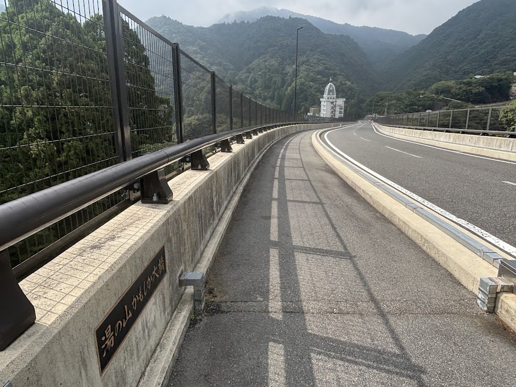 スタート地点から御在所ロープウェイ乗り場までは約4㎞とそれほど長い距離ではないのですが、その4㎞がとんでもなく長く感じ、鈴鹿スカイラインと湯の山温泉をつなぐかもしか大橋にたどり着いた時には完全に満身創痍状態。