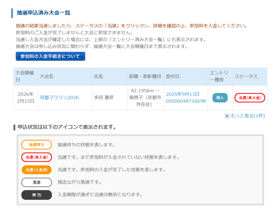 そんなこんなで迷っていた今日の朝、ひそかにエントリーしていた京都マラソンの抽選結果のメールが届きました。