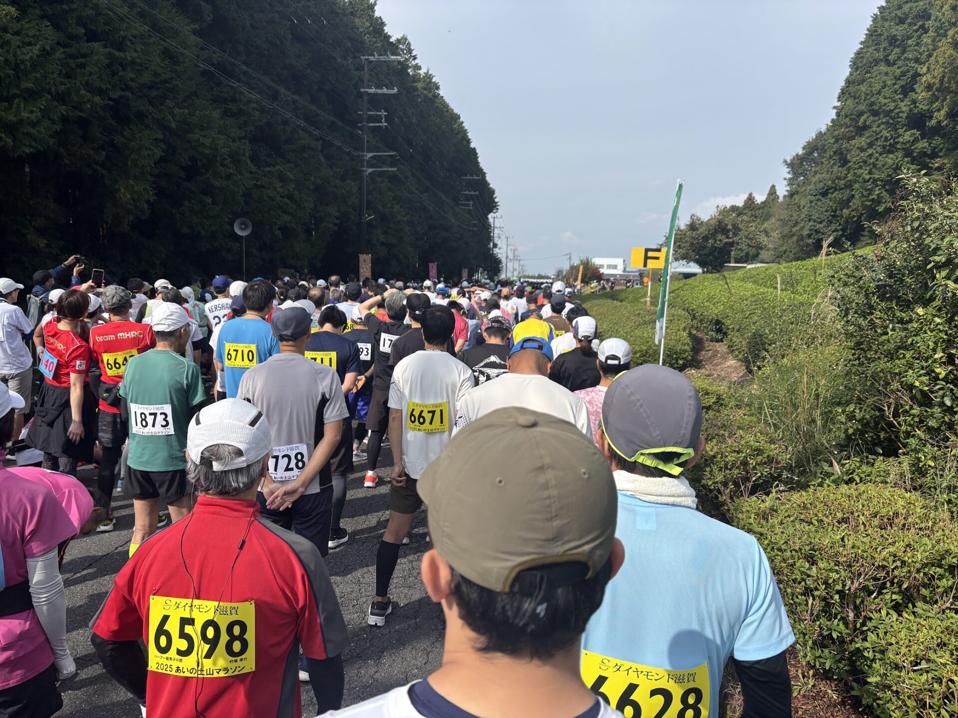 そして本来Bブロックからのスタートの予定でしたが、かなりのスローペースで走る事態も想定される中、Bブロックで一生懸命に走る方々に失礼だという事で、かなり後方のFブロックより土山マラソンをスタートする事にしました。
