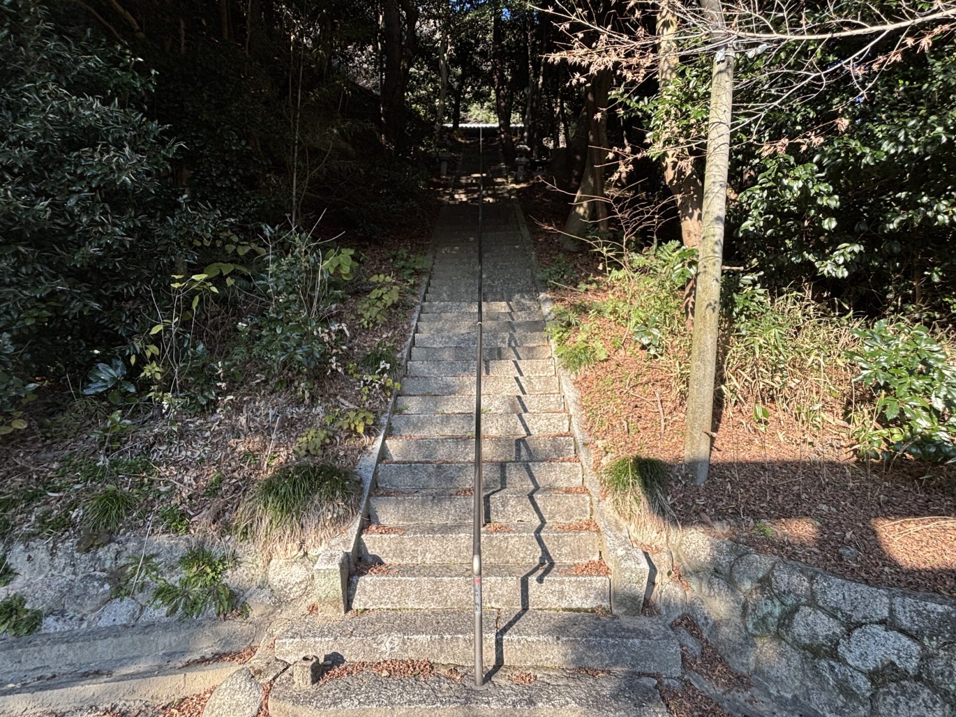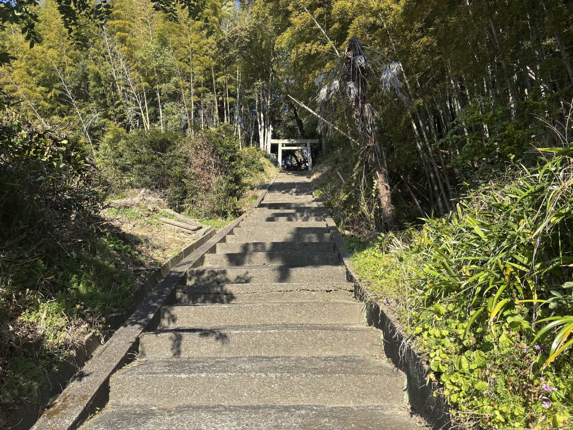 最後のスポットとなったのは、伊坂ダム周回コースを少し外れたところにあり、布自神社に続いて、本日2度目の階段道を上っていく事となる鶴澤神社。
